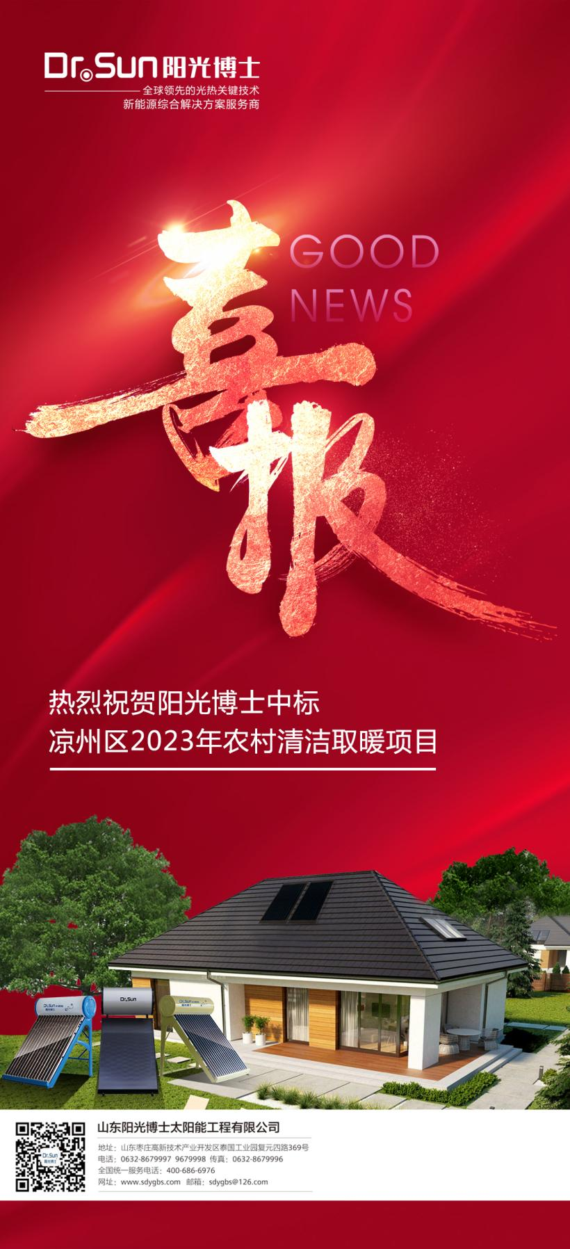 陽光博士憑借優質的產品質量,過硬的技術能力,良好的市場口碑,在眾多競爭對手中脫穎而出,成功中標涼州區2023年農村分散農戶清潔取暖改造項目。